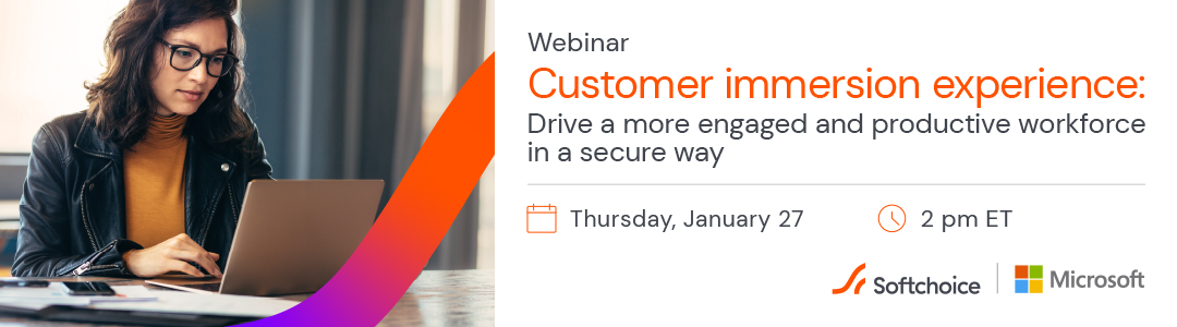Microsoft 365 is the productivity cloud that securely connects people, teams, and workflow in an intelligent, transformative way. Join us for our upcoming Customer Immersion Experience on Thursday January 27 from 2 pm - 3:30 pm ET where Softchoice and Microsoft experts will lead a discussion through Modern Workplace core conversations.