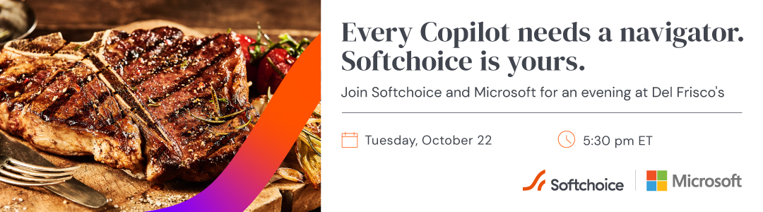 Join the Softchoice and Microsoft Copilot Roadshow in Philadelphia on Tuesday, October 22 at 5:30pm ET for an exclusive dinner and discussion inside a vault at the stylish and delectable Del Frisco's where we will share our personal learnings and Copilot knowledge with you.